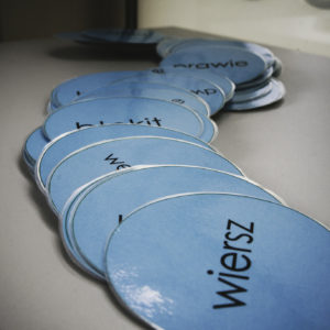 Mnóstwo, cały ogrom kółek z rozmaitymi wyrazami, które należy przyporządkować do odpowiednich części mowy. Na rewersie – kontrola błędu w postaci symbolu i nazwy części mowy. Z premedytacją umieściłam tutaj i nazwę, i symbol, ponieważ zauważyłam, że dzieci mają czasem tendencję do zapamiętywania tylko symboli, bez nazw i w efekcie, kiedy pytam: „Zielony – jaka to część mowy?”, dostaję odpowiedź: „No, ten… ten niebieski… trójkąt!” 😉